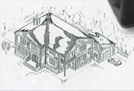 | This isometric picture of a house was originally drawn on a paper surface called vellum. Often times it is important to allow certain parts to dry before proceeding to other areas. |
